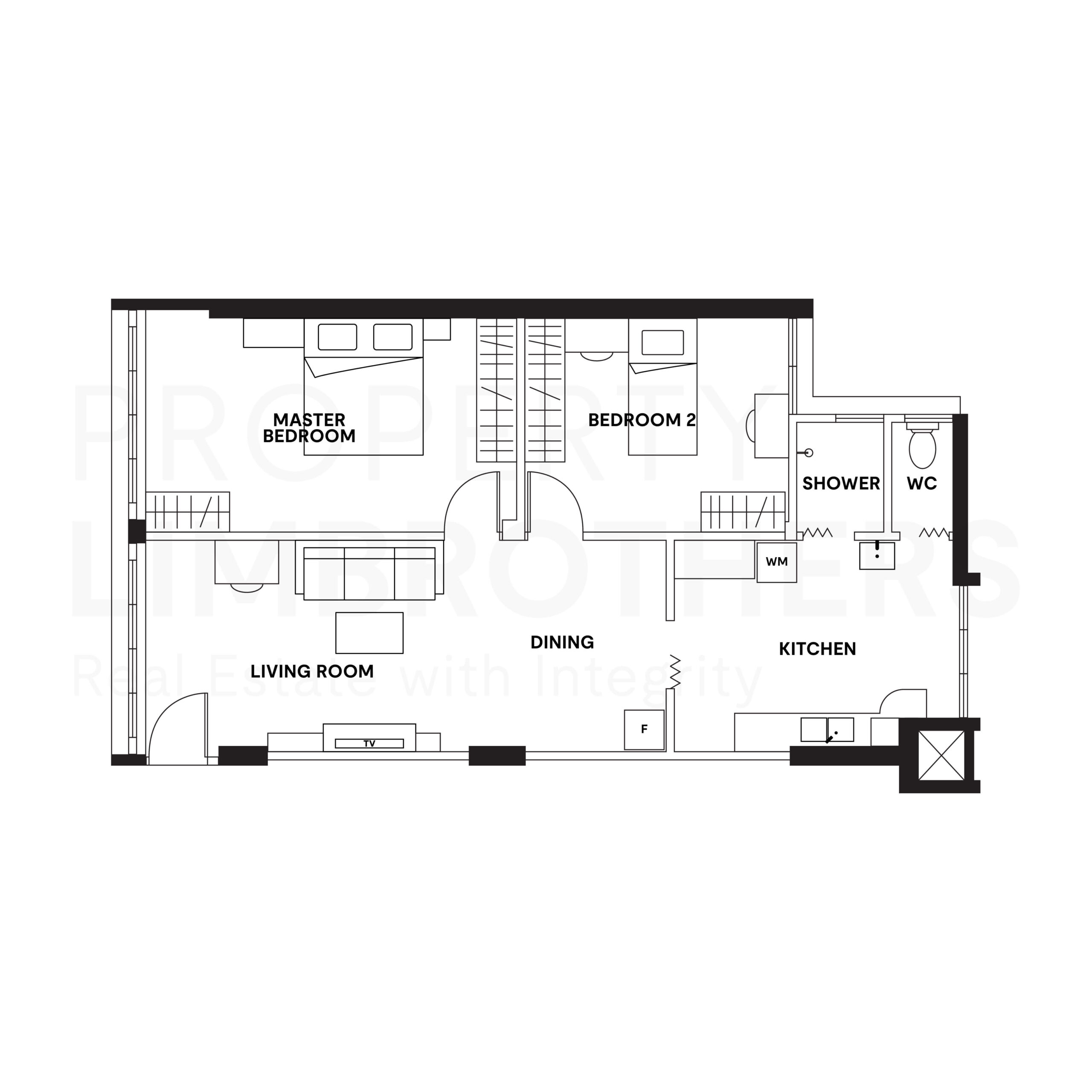 - 2 Bedrooms + 1 Bathroom + 1 Shower