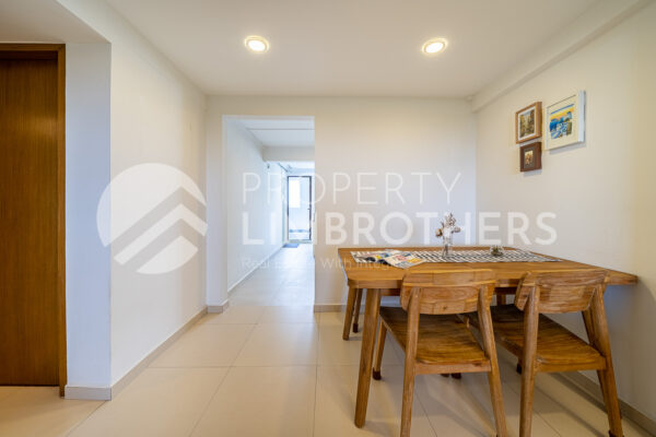 Entering into a squarish living and dining area, the unit is well-lit with the natural sunlight that is abundant with its high-floor, unblocked front and back. With its positioning, there’s also good crosswind ventilation and a view of East Coast Park from the front. Compared to other units with similar features, this unit is also much quieter due to the good distance and setback from the ECP expressway from the carpark located in front of the block. If accessibility is what you’re looking for, fret not! It’s just a 10-minute walk to Marine Parade Central Market and Food Centre and supermarket. Parkway Parade is an additional 5-minute walk away and is just adjacent to the future Marine Parade MRT. To top it all off, this property is just an underpass access away to East Coast Park.