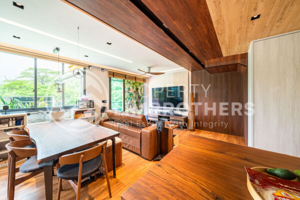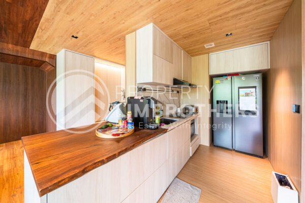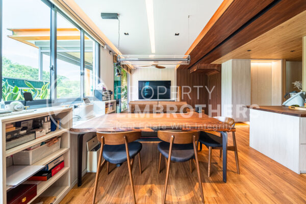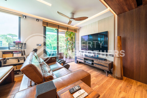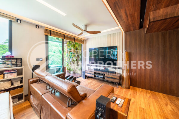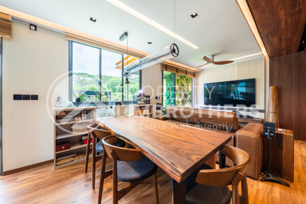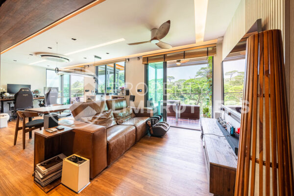 This unit has undergone a gut renovation, featuring top-of-the-line fittings and a built-in entertainment system worth over $200,000. The north-facing main door provides plenty of natural light, while the south-facing living room offers breathtaking views of the Lower Seletar Forest.