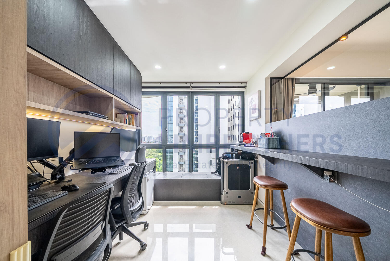 - One Common Room Converted Into a Study Room with Wall Mounted Bar Table Top & Built-In Study Desk