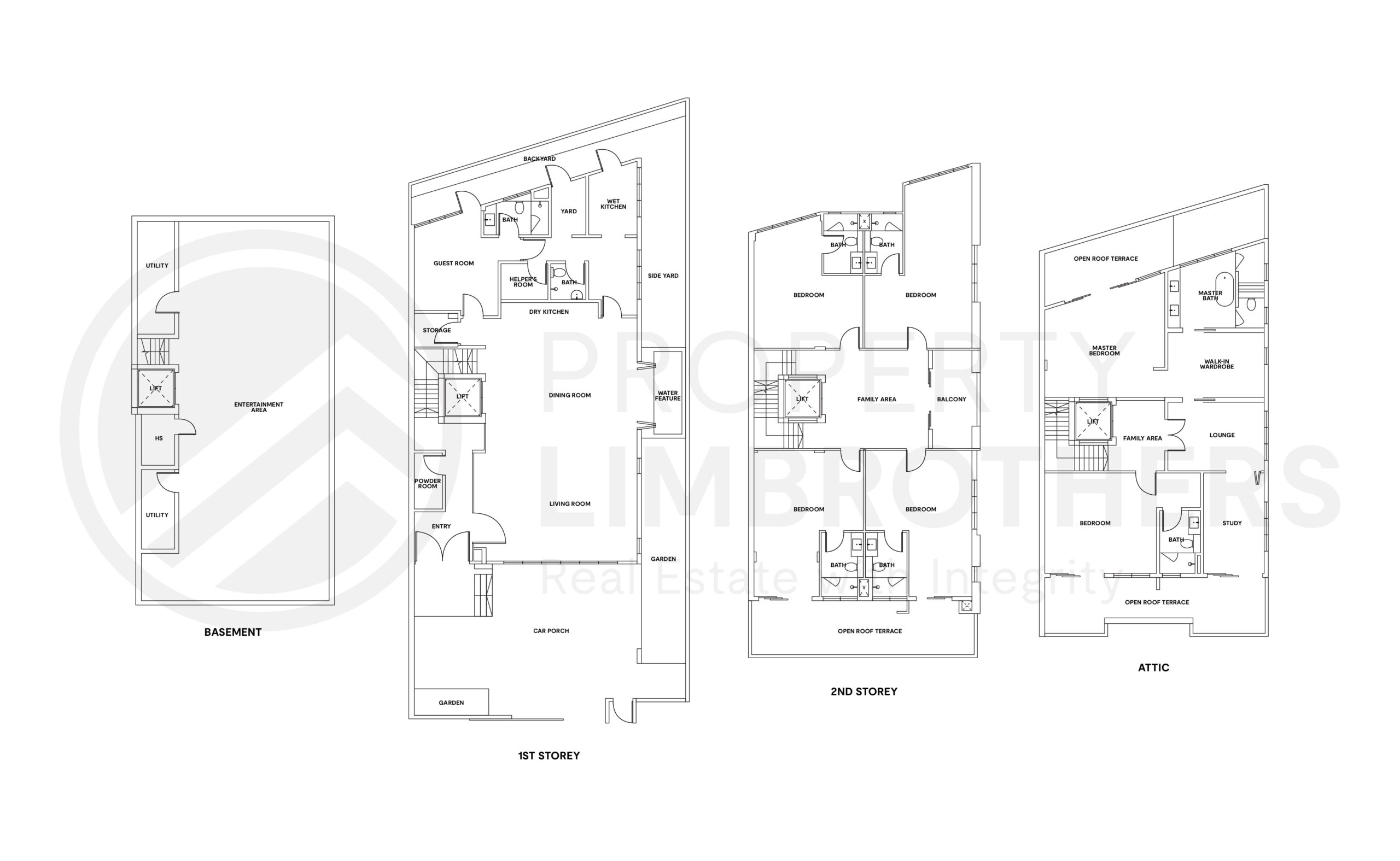 - 2 Storeys + Basement + Attic