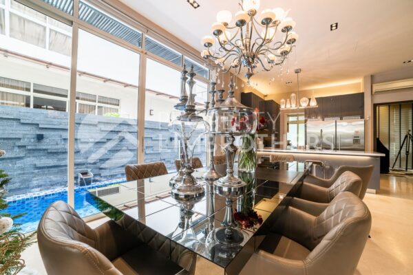 We have a 999-years leasehold 3.5 Storey semi-detached located in an exclusive landed enclave at Luxus Hills in District 28. This property consists five bedrooms, six bathrooms, a private lap pool, a dry and wet kitchen, two family areas and a roof terrace with a land size of 2,287sqft and 3,700sqft built-up space. Amenities-wise, you are stone’s throw away from Hougang 1, Seletar Mall and Ci Yuan Hawker Centre. For families with school-going children, the prestigious Rosyth School is within the 1km radius.