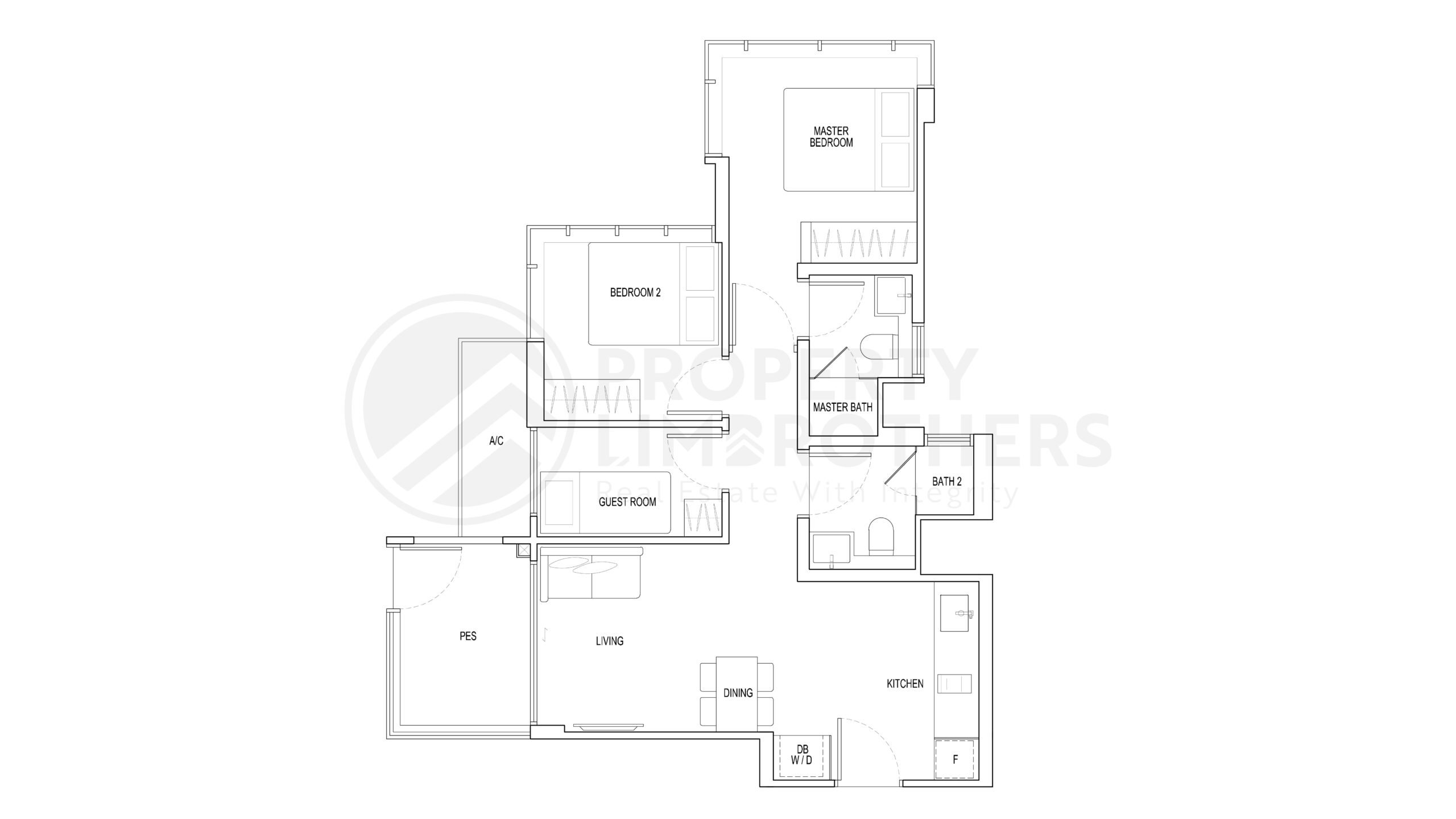 - 2 Bedrooms + 2 Bathrooms + Guest Room layout